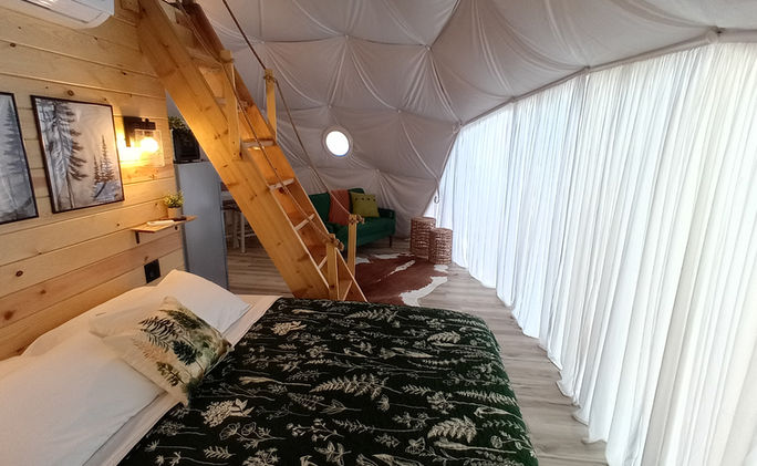 Welcome to your relaxing Glamping getaway! Relax in the privacy of one our Green Glamping EcoDomes - fully equipped for luxury and comfort, designed to blend in with the beautiful forest that surrounds it.